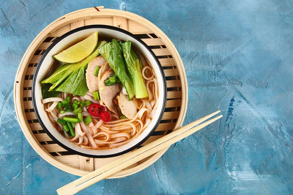 Membuat kaldu aromatik:Rebus kaldu sapi lalu masukkan bawang bombay dan jahe yang sudah dipanggang. Tambahkan kayu manis, bunga lawang, dan kapulaga. Rebus 30–40 menit agar aromanya kuat. Membumbui:Tambahkan kecap ikan